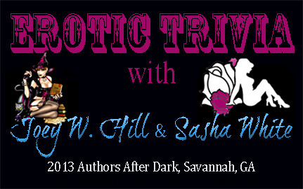 What do you think? WOuld you want to spend an Hour playing Erotic Trivia with myself and the fabulous Joey Hill? The first 75 people in the room will get Goody Bags full of treats, and there’s gonna be some other prizes given out randomly to Trivia participants and winners.