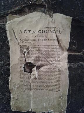 One of the first things you see on entering the museum is this official notice enforcing the law against throwing stones at the executioner and prisoners during an execution. Were the stone throwers in favour of the criminal, or aiding the deliverance of justice by showing their anger at the wrongdoer, or did they enjoy it as a show? A mixture, I suspect. It gives a sense of what the scene might have been like...In my reading on the Scottish witch trials I learned that in one instance the villagers stoned an accused woman then trampled her body to death beneath a wooden door, such was the fear and persecution surrounding "evil" witchcraft.These factual stories influenced the way I described the death of the Taskill's mother, which was also the moment when the three young siblings (Jessie, Lennox, and Maisie,) were torn apart. The scenes haunt all three of the Taskill Witches, inevitably, and it is Lennox above all who wants justice and battles injustice wherever he sees it--and he often gets a mite hoteheaded when he does.