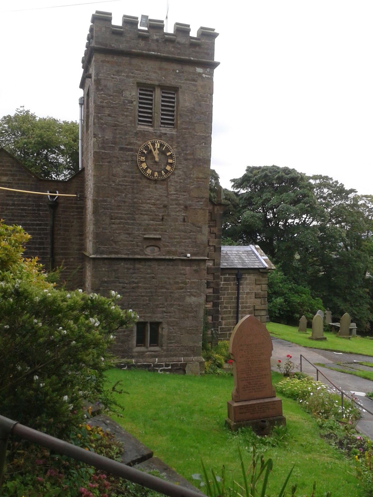On to Newchurch in Pendle. Here in the church of Saint Mary's many of the Nutter family are buried and Alice's family brought her remains back to be buried here. Check out the church tower - that carving below the clock is an "eye of God" added to protect the locals from pagans and witchcraft. Baffling - wasn't the presence of god in the church/crosses etc enough? Apparently not. It's also interesting to note that the eye of god symbol seems almost pagan in its design. The plot thickens.