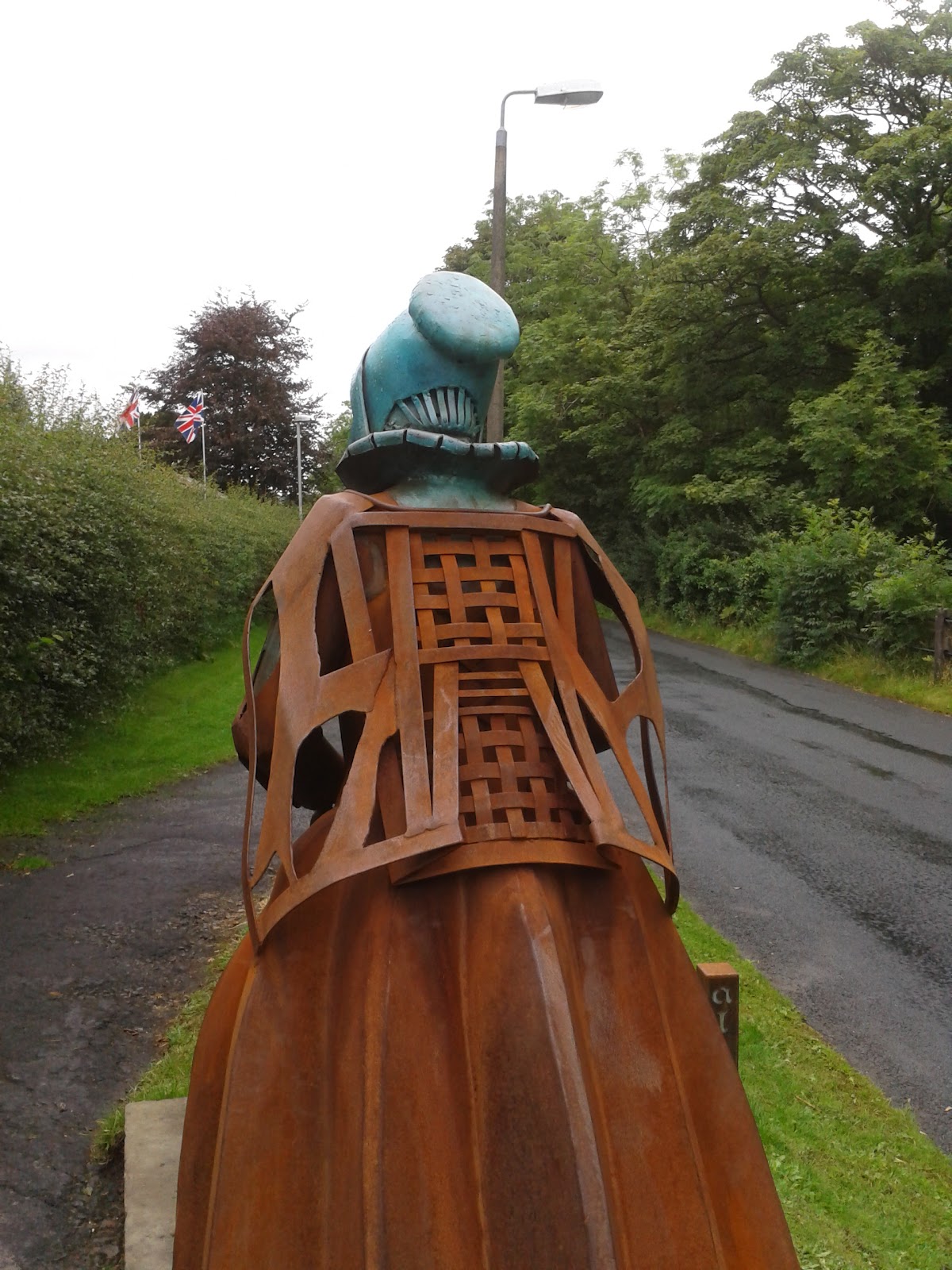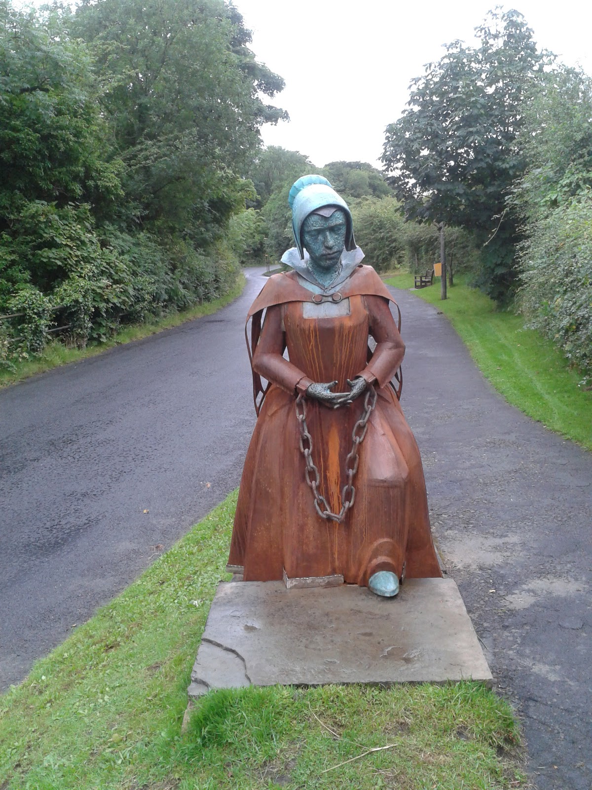 The group of witches that went on trial were from a small area in Pendle Forest. First up we went to Roughlee, because I wanted to visit a commemorative sculpture there - that of Alice Nutter, one of the women who was charged and hanged. What's fascinating about Alice is that she seems unconnected to the rest. The majority were indeed a ragtag bunch, impoverished con artists and grave robbers who sold enchantments and the like - courting the image of witchcraft and leading a dangerous life. Alice was from a family of yeomen, respected in the area, and not impoverished. It is thought that the possible reason she did not defend herself from the charges of witchcraft was because she was a catholic, and on the day she was said to be heading to a coven meet she might have been on her way to a secret mass. Her two brothers were priests and her son was in Europe training to be a priest. At the time being a catholic was almost as heinous as being a witch. Did she stay silent to protect her loved ones? We will never know. You can read more about the statue here.