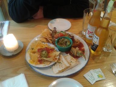 Lots of good places to eat in the city, but I had to share this one which we visit every time we go. Pancho Villas serves gorgeous Mexican food. Here's the shared veggie starter and a main course of Albondigas en Chipotle (spiced meatball with mexican rice and salad) for me. Highly recommended!