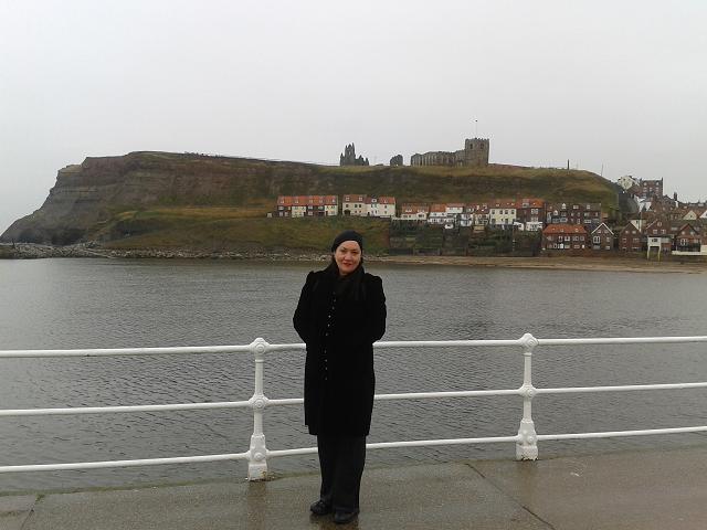 Here I am in Whitby, on the jetty with the abbey on the cliff top behind me.