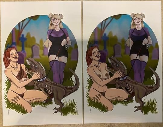 NSFW version of the issue one cover with art by Lapka and Costa.As is SOP with mature comic books made possible via crowdfunding, the first issue of Death Nell comes in a variety of alternative covers, with nude variants of each. The campaign to fund issue two of Death Nell (which ends February 15th) follows suit.