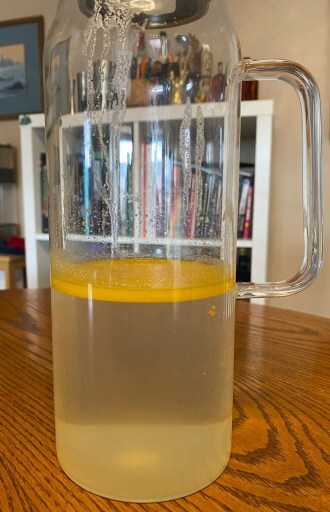After an hour a few popcorns will have sunk. There will be a nice “healthy” hue to the rum.