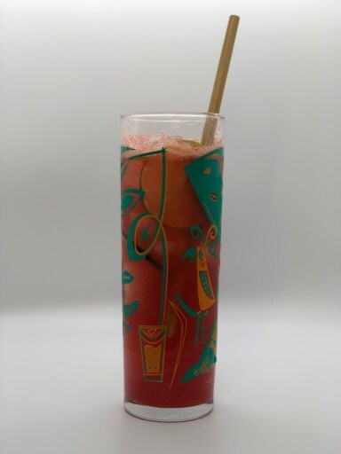 The Chimamanda Ngozi Adichie. Glass from Strong Water in Anaheim. Photo taken by Michele Brittany.There’s a total of fifty cocktail recipes to explore in Buzzworthy that run the gamut of simple to complex in difficulty, using a variety of spirits, but also plenty of mocktail and low ABV options as well. An example can be found in Chimamanda Ngozi Adichie’s cocktail which calls for grenadine, lime, lemon, and orange juices, bitters, club soda, and a shot of Campari. This is a fizzy and fresh drink with the bitterness normally found in Campari-forward drinks being greatly subdued. With so little alcohol there’s no burn, making a pleasant, long-sipping experience.