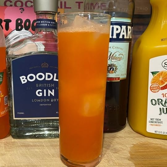 Jeff WallThe Miranda July follows a similar path with gin, orange juice, orange Fanta soda, and Campari. The bitterness of the Campari is tempered down from the sweetness of the one-two orange combo.