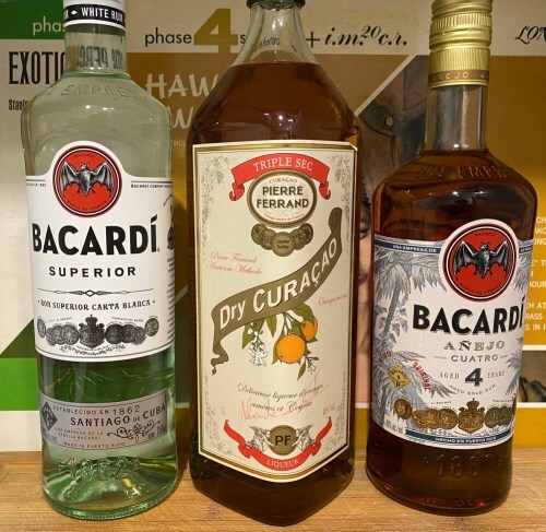 Brand new, unopened bottles just for this article!Bacardi 151 was discontinued back in 2016 making the 151 iteration of the Bacardi Mai-Tai impossible to reproduce unless one has saved a bottle all this time. Don Q 151 would make an excellent replacement for a Puerto Rican 151 overproof rum. However, the Bacardi Mai-Tai offers an alternative recipe using Bacardi Añejo which is easily procurable. For the Bacardi Light, Bacardi Superior is the successor rum, which is also easy to obtain. Pierre Ferrand is a workhorse orange liqueur for mai tais so it will be a perfect choice for the orange Curaçao.