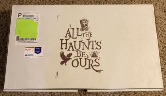 The parcel that The Witches’ Bundle came in was huge. Wide and unwieldy, but at least not super heavy. The exterior was printed with the All The Haunts Be Ours artwork in gold. Very classy.