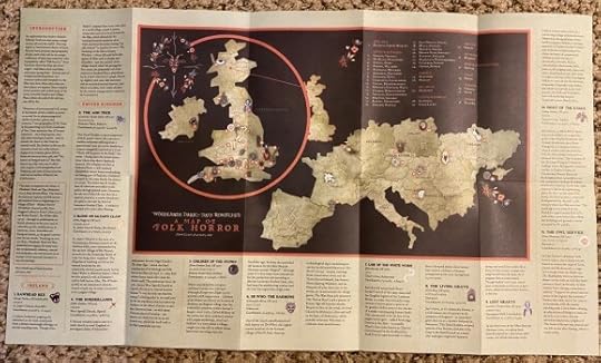 Asking for directions.The map proper is two sided. The front side shows Europe depicting where each folk horror film takes place.