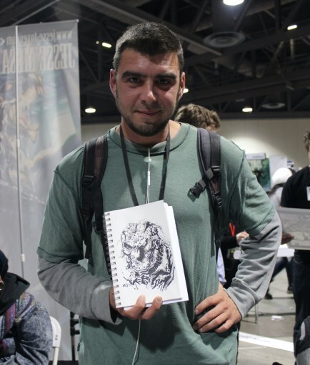 Matt holding a drawing he did of Jason Voorhees in Michele’s sketchbook.I’ve had the honour to know Matt since the early 2010s. He was a staple to the various Los Angeles and surrounding area comic book conventions, typically present at the Fanbase Press booth. He did the illustrations to one of their early comics, The Arcs, which is also his contribution to the neo-peplum genre. He was fun to talk with, especially about gory horror films.