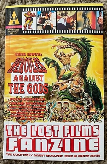 Issue eight of the zine prominently features on the cover a movie called Hercules Against the Gods, with Hercules fighting a giant dragon-dinosaur-looking monster. So, of course, I had to order this.
