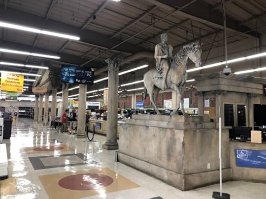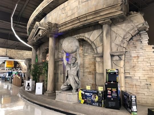 And thus my history with Fry’s Electronics. What does this have to do with the peplum genre? In the very late 2010s the news really started to pick up traction of Fry’s closing down. There were a plethora of articles about shuttered stores and Fry’s that were entirely empty of product. Directly south of me on the border of Costa Mesa and Fountain Valley was a Roman-themed Fry’s. Not wanting to miss out on seeing this Fry’s before it shuttered, in October 2019 Michele and I went and checked it out. What follows below is a gallery of images I took of the Roman-theme Fry’s, highlighting its many embellishments of antiquity while also documenting a store in decline.
