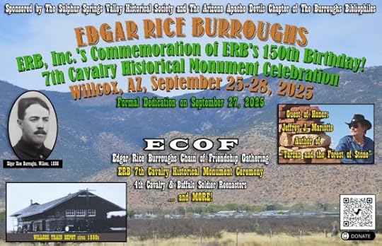 ECOF 2025In September of 2025 there will be an Edgar Rice Burroughs Chain of Friendship (ECOF) event down in Willcox, AZ. This event is to celebrate the 150th birthday of Burroughs while also honoring him with a plaque in the town due to his stationing with there the 7th U.S. Calvary in the 1890s. (Note: another ERB convention was held in Willcox back in 2019 and an event recap of that can be read at ERBZine #7059).