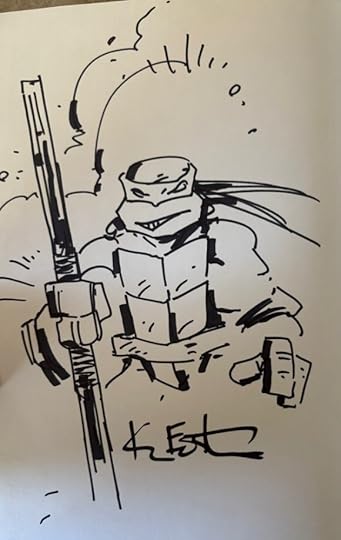 Anywho, I do have some of the IDW collections of the original mid-80s Turtles comics. I’ve met Kevin Eastman a few times at different cons, but at a Long Beach Comic Con in the later 2010s I took him the Ultimate Collection Vol 1 to autograph, which he did, and he drew a sweet Donatello (my favorite turtle) in it!