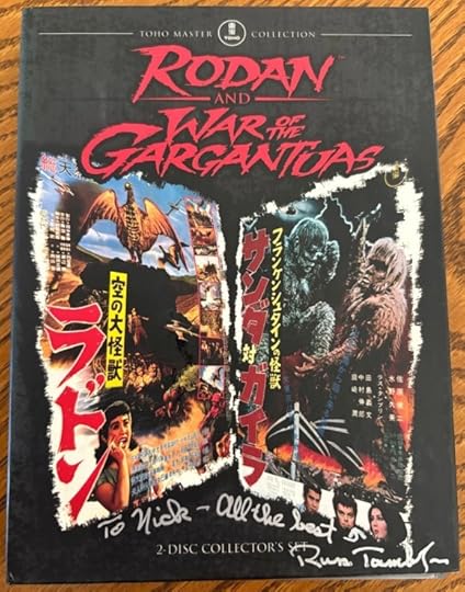 I have quite a Godzilla film collection, but I have only one autographed kaiju film, and that is War of the Gargantuas (1966, Ishiro Honda) by Russ Tamblyn. There was a West Side Story anniversary Hollywood Collector’s show way back in the day, and he was in attendance, so I had to get my monster movie signed!