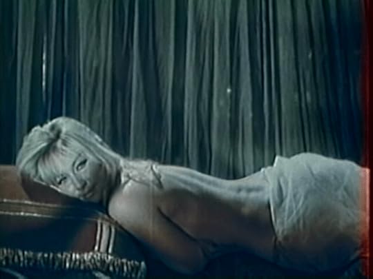 Venus gazes into a mirror and at the audience.Vulcan, Son of Jupiter tries hard to make the goddess Venus a villain and attempts to do so by relying on film noir archetypes by portraying her as a femme fatale. Venus is a seductress of men: she wants their adoration which gives her control over them. This is the extent of her goals though, she does not display any desires beyond having a man’s undivided attention and affection. This is in stark contrast to other peplum vamp characters, such as Princess Nellifer (Joan Collins) in Land of the Pharaohs (1955) who uses her skills to seduce Pharaoh Khufu (Jack Hawkins) for the specific goal to acquire his treasure.