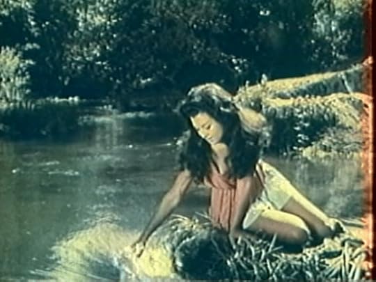 Aetna at a pond before being captured by Milos’ soldiers.Aetna is the love interest of Vulcan, the femme fragile to Venus’ femme fatale. Compared to other women characters of sword and sandal cinema, Aetna has a surprisingly amount of agency. She may get captured twice in the film, but she rises about the typical damsel: she and the other Daughters of Neptune rescue Vulcan, they plan the escape attempt from the prison, she goes on the adventure with Vulcan and Geo, and at the end of the film, she fights Venus, lashing at her with a whip. Aetna delivers on the kitten-with-a-whip action that was only promised, but not delivered, by the poster art of The Revolt of the Slaves (1960) which depicts Rhonda Fleming brandishing a whip while destruction surrounds her.