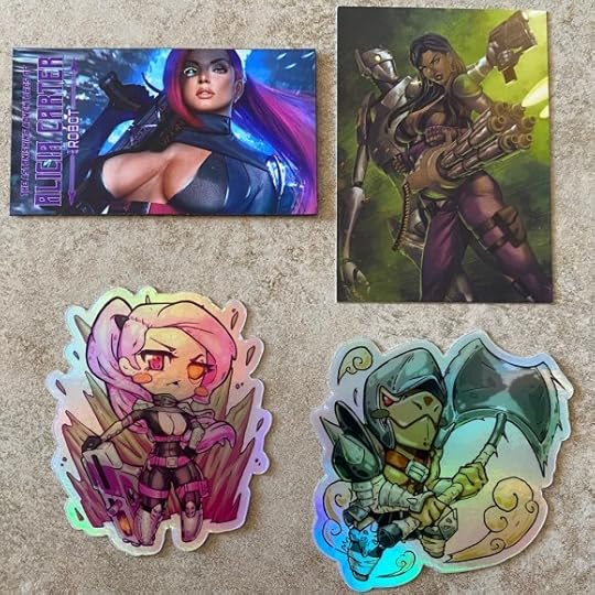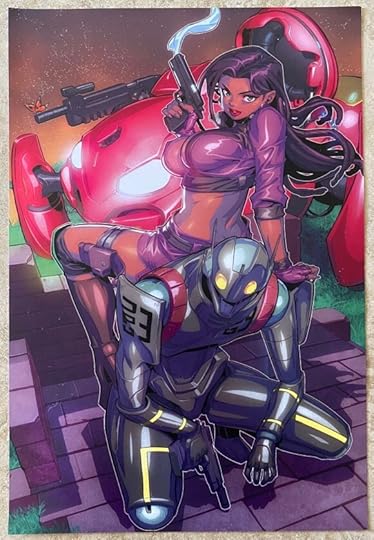 As with issue one, issue two of ACaR enjoys a bounty of Kickstarter loot (that is if one contributed to the campaign). The art print done by the Xong Bros. showcases Carter and GDU-3 in a manga style. Carter sitting atop of her robot companion is reminiscent of some of the Masamune Shirow/Ghost in the Shell covers.