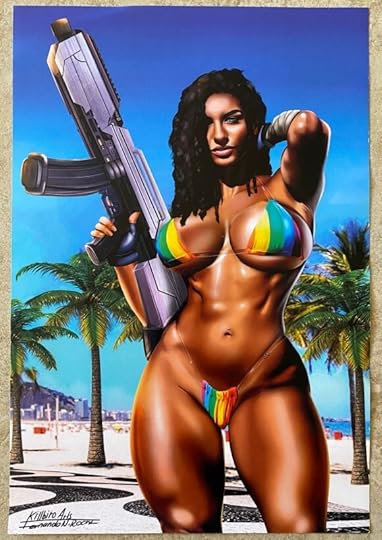 And a thick-paper print of the Khamunaki cover of Becca in white stockings.