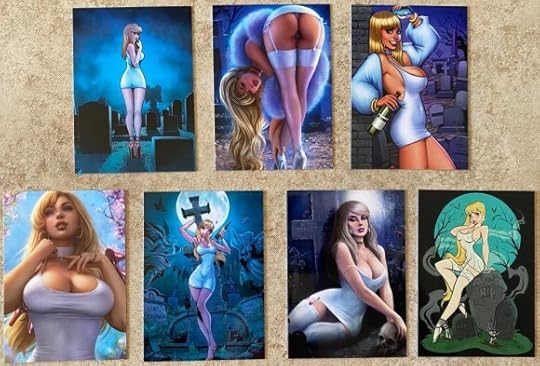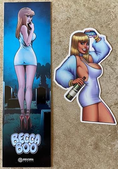 Issue one of Becca Boo is a short affair, clocking in at only twenty pages. However there is an extensive gallery of pinup covers that depict Becca in a variety of styles, from cartoonish to superhero-ish. The debut of Becca Boo: The Bimbo Ghost was realized via a Kickstarter campaign in early 2023. As with many Kickstarted comics there was a lot of supplemental loot and stretch goals to be had.