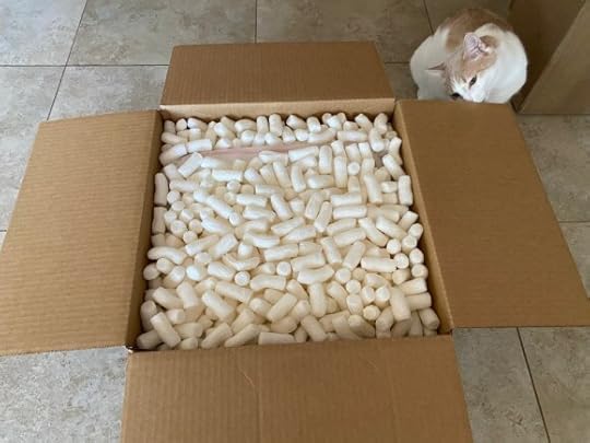 Bonus Spunky cat checking things out.Packed with lots of popcorn, obscuring the contents within.