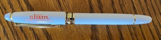 A recreation pen from the Hotel Siam in Bangkok. It looks like a white Mont Blanc.