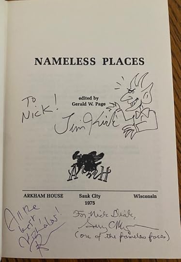 Next up is one of my most prized possessions, an Arkham House publication, Nameless Places, signed by author Gary Myers, Ramsey Campbell, and over artist Tim Kirk.