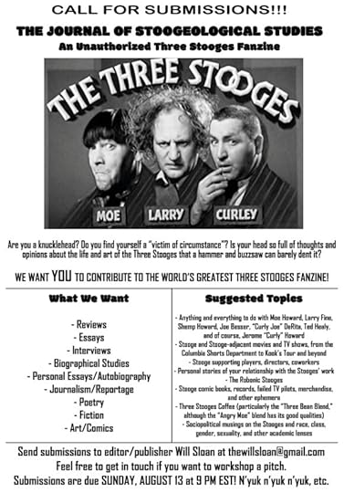 Will Sloan is looking to start a zine about The Three Stooges and is looking for submissions. Here is the flyer:
