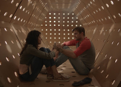 When Annie returns from her trip, she’s surprised when she finds the cardboard structure before her and no sign of Dave. But, soon after her arrival, Dave hears her moving about the living room, and he calls out to her from inside the maze. He explains his situation but cautions her not to enter it because of the inherent danger. He asks her to contact his best friend, Gordon (Adam Busch), to see if he can come up with ideas for how he might make his escape.