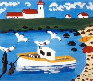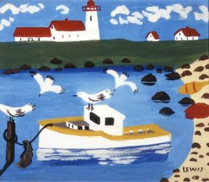 “Cape Islander Cove,” by Maud Lewis. Courtesy of the Art Gallery of Nova Scotia, all rights reserved.