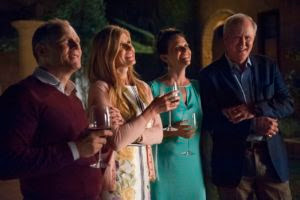 To celebrate the closing of a lucrative business deal, high-powered hotel developer Doug Strutt (John Lithgow, right) shares the moment with his trophy wife, Jeana (Amy Landecker, second from right), along with his business partner, Grant (David Warshofsky, left), and his wife, Kathy (Connie Britton, second from left), in “Beatriz at Dinner.” Photo by Lacey Terrell, courtesy of Roadside Attractions.