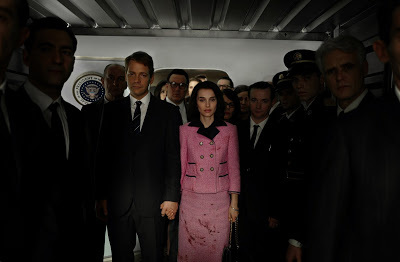 November 22, 1963 is a date most of us will never forget, even all these many years later. The nation and the world were sent into a collective shock with the assassination of President John F. Kennedy (Caspar Phillipson) while his motorcade was traveling through the crowded streets of downtown Dallas, Texas. Many of us felt the pain of this tragedy deeply, so much so that it became personal. But no one was more devastated than his wife, Jackie (Natalie Portman), who was sitting beside him when the fatal gunshots rang out, her now-infamous pink designer suit spattered with the blood of her husband.
