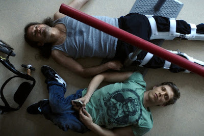 Rupaszov, a disabled fireman-turned-hitman (Szabolcs Thuróczy, top), and his accomplice, Zolika (Zoltán Fenyvesi, bottom), make an unlikely duo of contract assassins in the new Hungarian dark comedy, “Kills on Wheels” (“Tiszta szívvel”).