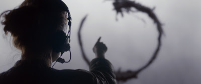 Deciphering an alien “language” is the objective of linguistics professor Dr. Louise Banks (Amy Adams, back to camera) in the thought-provoking new sci-fi thriller, “Arrival.” Photo courtesy of Paramount Pictures.
