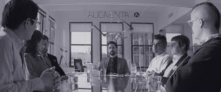 A hot-shot ad agency executive (Benjamin Dickinson, center) meets with his staff to create a compelling marketing campaign for a remarkable new eyewear-based computer technology in the quirky new independent comedy-drama, “Creative Control.” Photo courtesy of Magnolia Pictures.