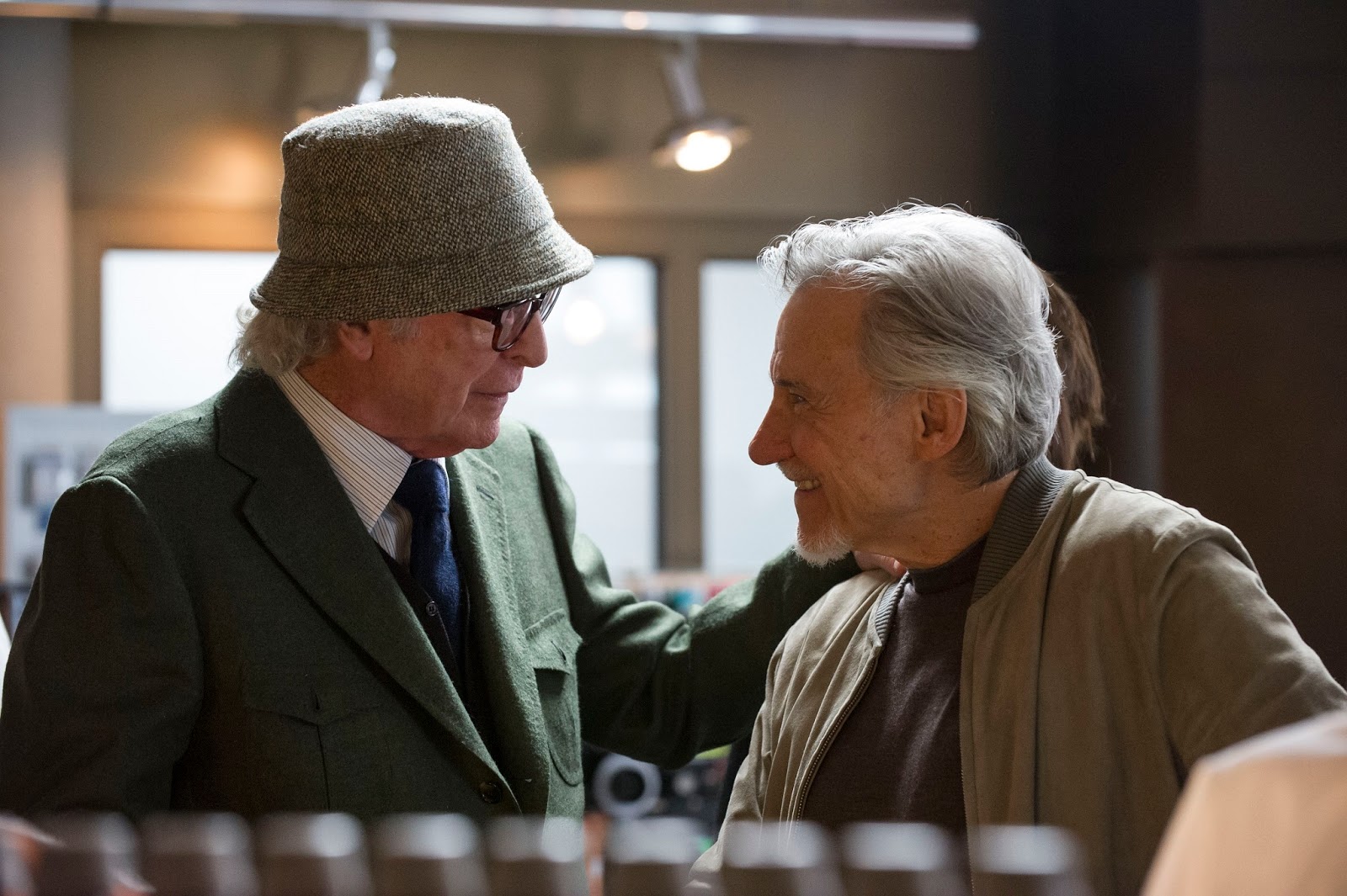 Mick, meanwhile, continues actively working on his new film with a coterie of young screenwriters (Nate Dern, Alex Beckett, Mark Gessner, Tom Lipinski, Chloe Pirrie) whose wide-eyed enthusiasm helps keep him young. However, despite Mick’s insistence on remaining active, he’s also aware that the years are catching up with him. So, with that in mind, he’s intent on making this film his testament, a consummate expression of who he is and the pinnacle of his artistry. He envisions the picture as a showcase for his favorite actress, Brenda Morel (Jane Fonda), an aging but prolific and profoundly versatile star with whom he has worked on many previous occasions. In doing all this, Mick’s clearly placing a lot of pressure on himself, but, with the clock winding down – and his health becoming questionable – he’s committed to seeing things through on this project while he’s still able.