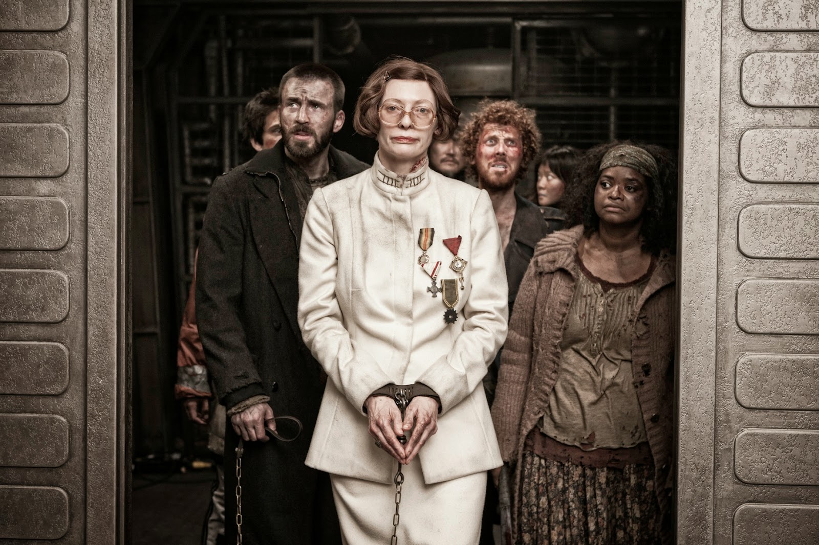 With their team in place, the rebels thus begin their ascent to the front of the train. Their efforts, however, are met with numerous challenges, including resistance from armed guards led by a ruthless commander (Stephen Park), the strong-arm tactics of a pair of sadistic henchmen (Vlad Ivanov, Adnan Haskovic), the platitudinous but menacing threats of one of Wilford’s chief minions, Mason (Tilda Swinton), and even the seemingly benign but decidedly deadly acts of a school teacher to the children of the elite (Alison Pill). But the insurgents’ resolve is so strong that there’s precious little that will hold them back. And, as they make their way forward, they discover an amazing world of wonder aboard the train that they never knew existed (and probably never even envisioned). However, the closer the rebels get to reaching their goal, the more one can’t help but wonder, will they attain it? And, if so, then what? Indeed, what ensues will inevitably surprise everybody, including those both on and off the screen.
