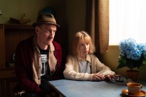 Middle-aged schizophrenic patient Jane (Sally Hawkins, right) tries her hand at romance with an aging would-be rock musician, Mike (David Thewlis, left), in director Craig Roberts’s second feature, “Eternal Beauty.” Photo courtesy of Samuel Goldwyn Films.
