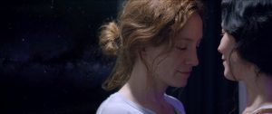 The relationship between MR (Emelie Jonsson, left) and her partner, Isagel (Bianca Cruzeiro, right), undergoes a series of ups and downs when their spacecraft, the Aniara, unexpectedly goes off course in the existential sci-fi offering “Aniara,” available in various home viewing formats. Photo courtesy of Magnet Releasing.