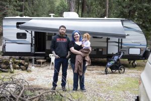 The Cox Family, Justin (left) and Kayla (right), take up residence in a mobile home after the wildfire that destroyed Paradise, California claimed their home, a story chronicled in director Ron Howard’s new documentary, “Rebuilding Paradise,” now available for first-run online streaming. Photo by Lincoln Else, courtesy of National Geographic.