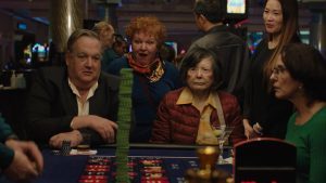 While paying a visit to a Connecticut casino, Grandma Wong (Tsai Chin, seated, second from right) can do no wrong when placing her bets in director Sasie Sealy’s delightful new comedy, “Lucky Grandma.” Photo courtesy of Eduardo Mayén, Good Deed Entertainment and Kino Lorber.