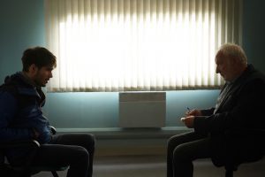 After an unexpected panic attack, warehouse worker Rémy Pelletier (François Civil, left) consults a therapist (François Berléand, right) to help him discover the cause in the new French romantic comedy, “Someone Somewhere” (“Deux moi”). Photo by Emmanuelle Jacobson-Roques, courtesy of Distrib Films US.