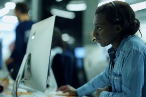 When a new co-worker comes to her department, CSR Djena (Eye Haidara) takes an interest in him that may involve something more than just friendship in the new French romantic comedy, “Someone Somewhere” (“Deux moi”). Photo by Emmanuelle Jacobson-Roques, courtesy of Distrib Films US.