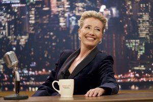 Katherine Newberry (Emma Thompson), host of a long-running late night TV talk show, engages in new material, like man-on-the-street segments, in an effort to boost sagging ratings in the delightful new comedy, “Late Night.” Photo by Emily Aragones, courtesy of Amazon Studios.