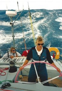 Tracy discovered a love of boating, something that at last gave her a sense of direction. And, through a chance encounter with a VIP guest on one of her charter excursions – King Hussein of Jordan – she developed a lasting friendship with the monarch, who admired her drive and enthusiasm and urged her to pursue her dreams. In fact, the King would one day come to her rescue by providing the sought-after funding she needed to launch her entry in the Whitbread. With the monetary support she needed in hand, she was on her way, but many more challenges would lie ahead.