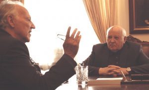 Director Werner Herzog (left) interviews former Soviet leader Mikhail Gorbachev (right) in the candid new documentary, “Meeting Gorbachev.” Photo courtesy of the Tribeca Film Festival/Getty Images.