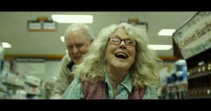 While picking up items for his everyday needs and supplementing his storage room’s supplies, Ed spies a spry but reserved fellow senior, Ronnie Meisner (Blythe Danner). He’s instantly smitten. Yet acting on an attraction to someone else is decidedly out of character for Ed, and his awkward initial attempts at getting to know her fall flat. Nevertheless he finds something special about Ronnie, and, in time, she discovers the same about him. And so, despite their cumbersome beginning, before long, the seemingly mismatched duo is an item.