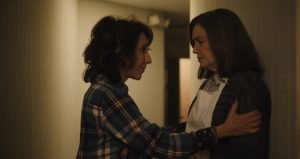 Relentlessly driven Samaritan Diane Rhodes (Mary Kay Place, right) receives encouragement to take care of herself from friend and fellow volunteer, Bobbie (Andrea Martin, left), in writer-director Kent Jones’s debut fictional feature, “Diane.” Photo courtesy of IFC Films.