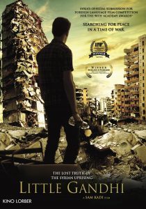 “Little Gandhi” (2016). Cast: Interview Footage: Robert Ford, Najlaa Alsheikh, Osama Abu Zayd, Motaz Morad, Ghiath Shurbaji, Muhammad Shihadeh, Shafeek Abdulaziz, Muhanad Abu Alzen, Rana, Hassan Abo-Kinan, Mohammed Namous, Radwan Ziadeh, Ahmad Shurbaji. Archive Footage: John Kerry, David Cameron, Ghiath Matar, Yahya Shurbaji. Director: Sam Kadi. Screenplay: Sam Kadi. Web site. Trailer.