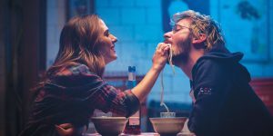 Telenovela star Kika K (Tatá Werneck, left) seeks solace from the craziness in her life with introverted bookstore employee Vladimir (Daniel Furlan, right) in the Brazilian screwball comedy, “Neurotic Quest for Serenity” (“Transfornada Obsessiva Compulsiva”).